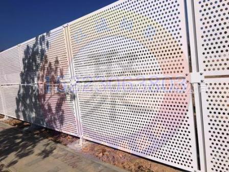 冲孔网围挡又名冲孔板护栏,金属板围栏,道路防护栏等,它是由两张