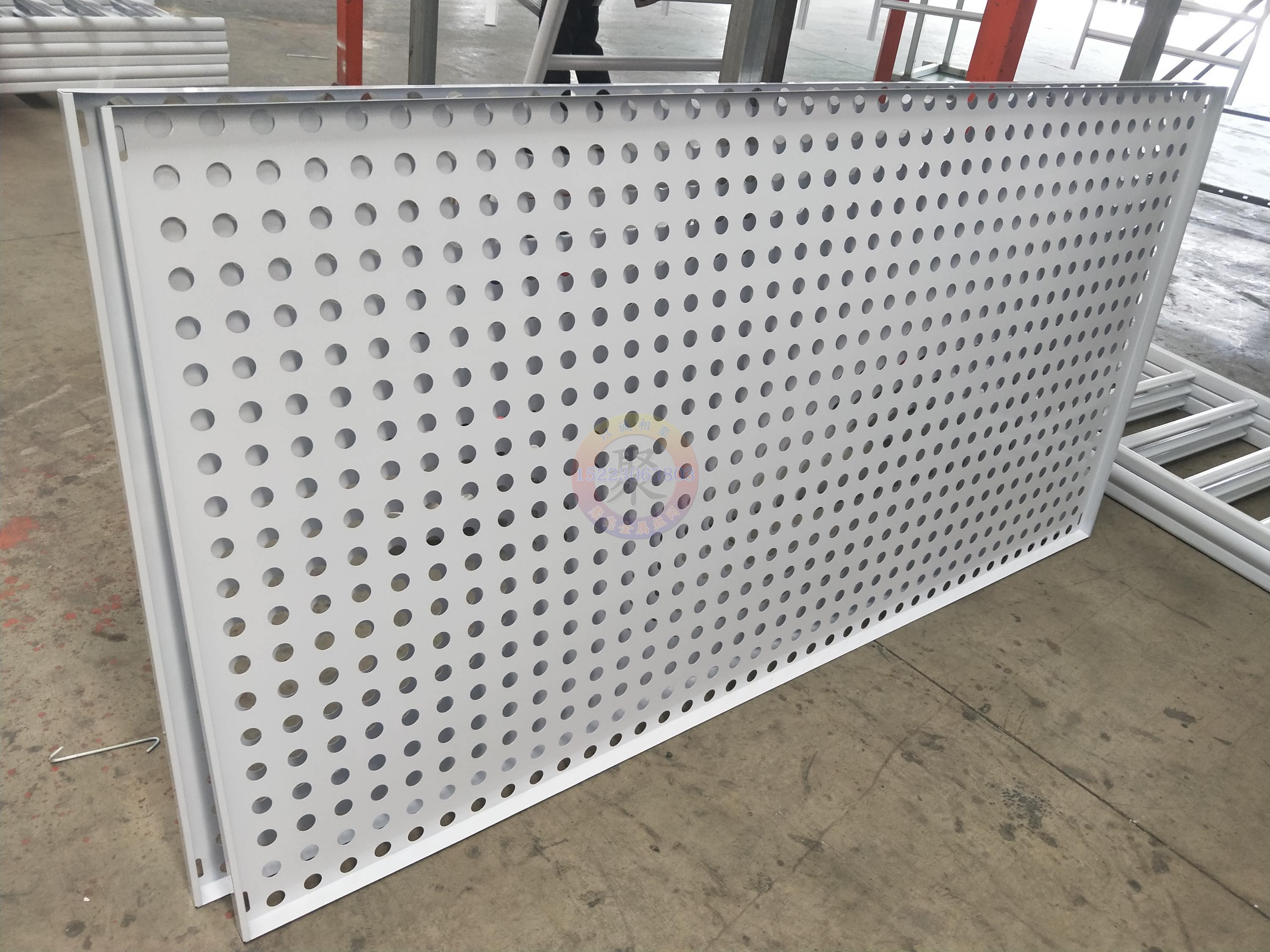 护栏整体尺寸一般为2500mm高*2500mm长,冲孔板为上下两张,网孔大