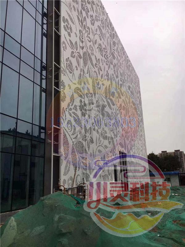 冲孔铝单板是指使用数码冲孔设备在常规铝单板表面钻出各种形状的孔洞,这些孔洞可以根据需要添加填充物。
