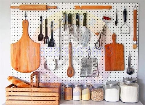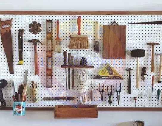 洞洞板应该会是手工帝、收纳控的最爱。在洞洞板上量好距离,穿上线或者固定好支撑物,就可以在板上做出任何你想要的形状,装好收纳盒子,接下来要做的事情,就是将你的宝贝小物件整理好挂上墙,容易失踪的工具也挂上墙示众吧。