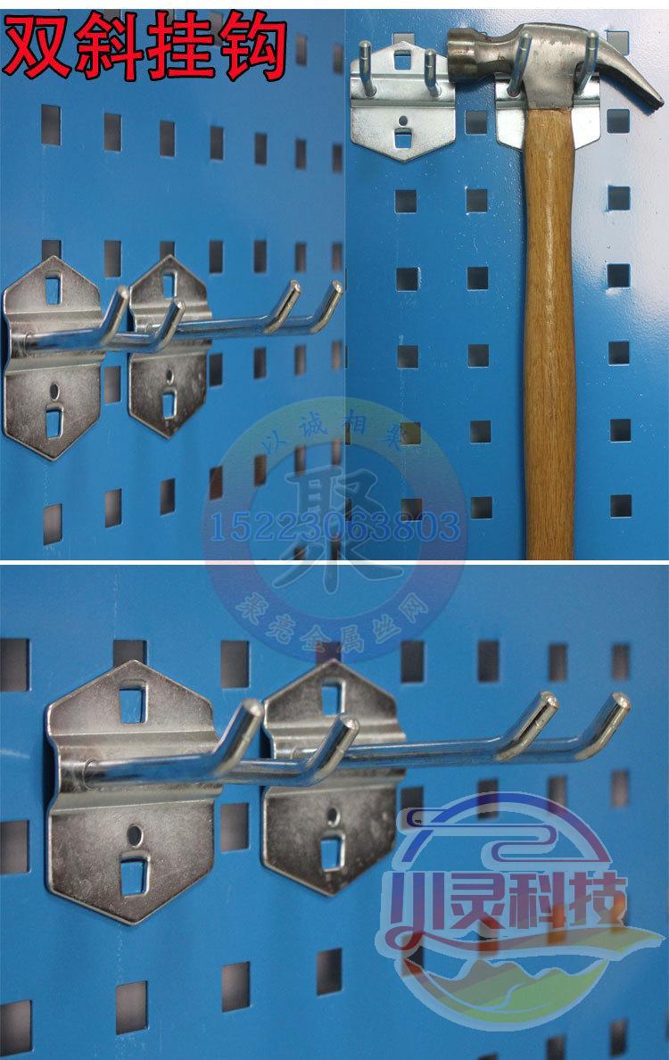 1、方孔挂板上安装挂钩,适合各类工具、零件的存放